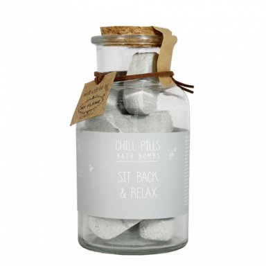 16 bruisballen, of eigenlijk chill pills in een glazen pot. Deze bruisballen lijken op een grote vitamine pil. Neem jouw welverdiende me-time en ontspan met deze heerlijke bruisballen. Laat 1, 2 of zelfs 3 pillen in het badwater vallen. De pillen zullen meteen gaan bruisen en oplossen in het water.