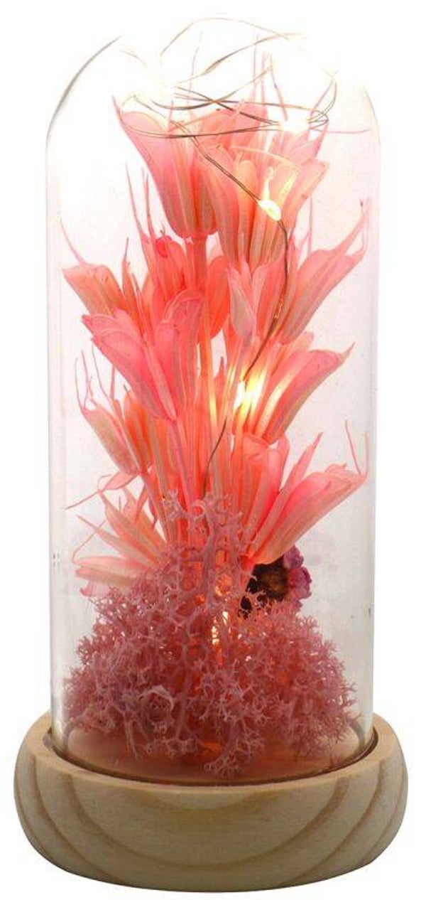 Glazen Stolp met gedroogde bloemen met led lichtjes