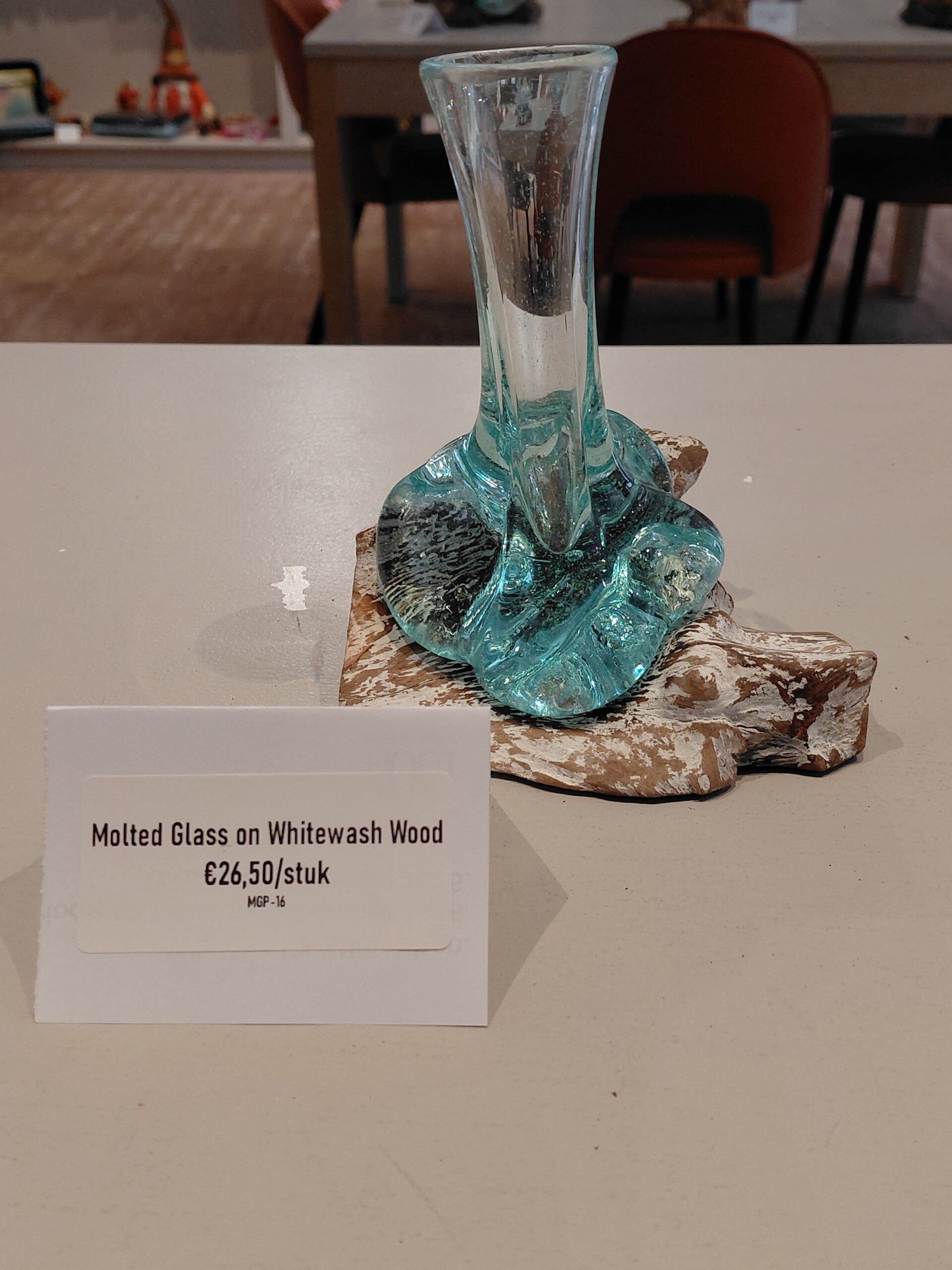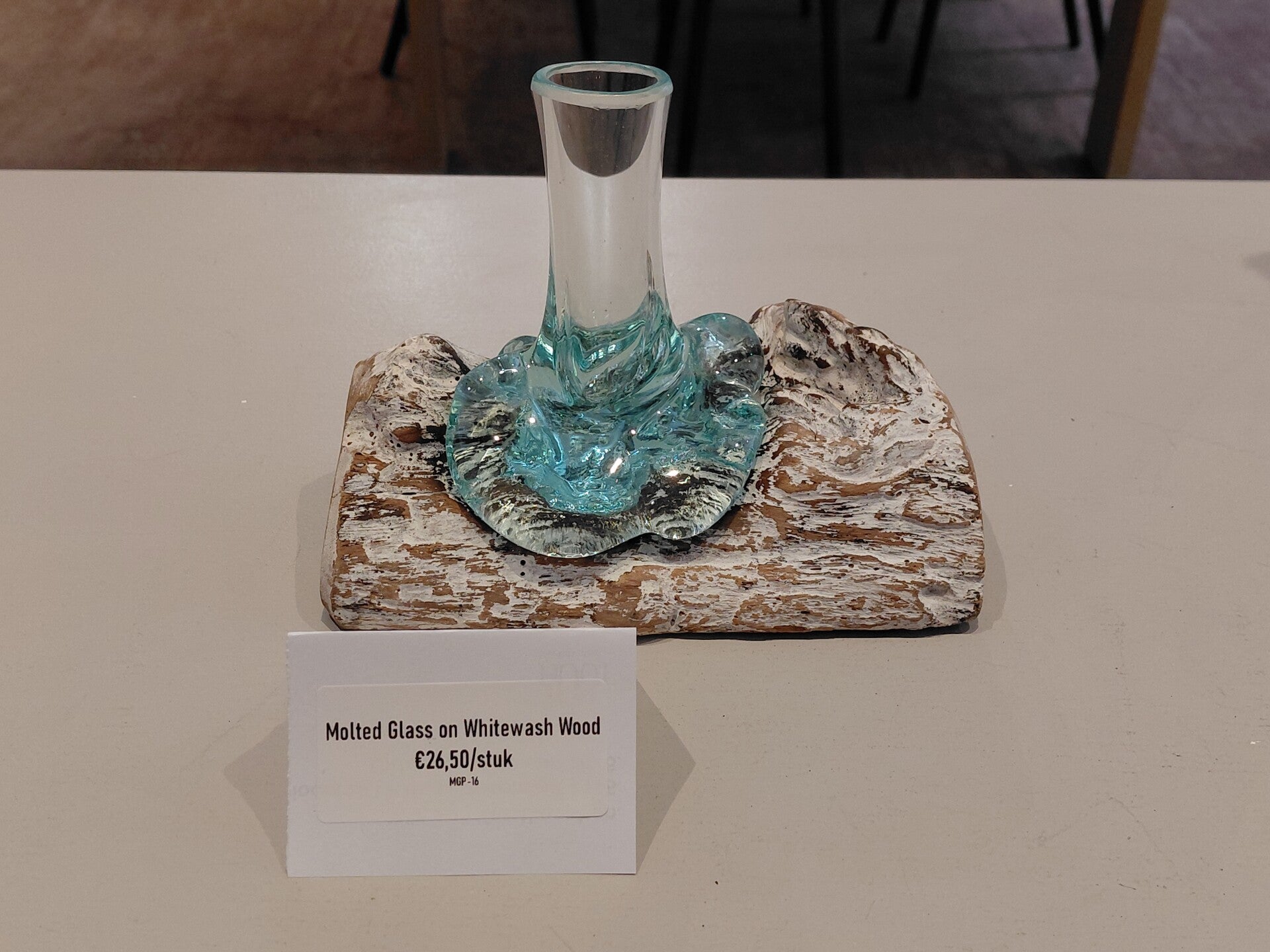 Gesmolten glas op witgekalkt hout - Kleine vaas MGW-16